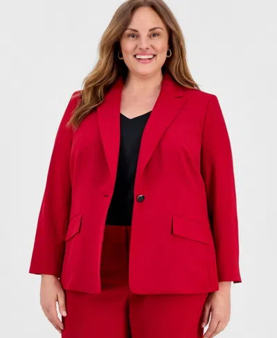 KASPER Plus Size Stretch Crepe One-button Blazer In Red