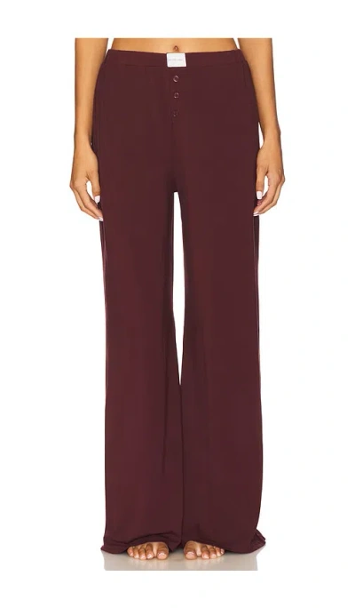 KAT THE LABEL Hugo Pant in Wine. - size XL (also in L, M, S, XS) KAT THE LABEL Hugo Pant in Wine. - size XL (also in L, M, S, XS) 90% bamboo 8% elastane 2% spandex. Machine wash. Pull-on styling. Elasticized waistband. Front logo patch. Front faux button detailing. Midweight soft jersey fabric. Item not sold as a set. KTHE-WI315. KTS-289-R. Fiercely feminine designs with the option to be exposed or hidden, each KAT THE LABEL garment is designed to lace you with confidence. They believe lingerie is the match which ignites one's sensuality and confidence, because there's no closer relationship than pairing your skin with your lingerie. KAT THE LABEL designs items to be cherished as keepsake or staple piece, to stand the test of time through quality fabrics & trims and unique designs. From embellished metallic threads to signature eyelash lace, your KTL piece will never disappoint.