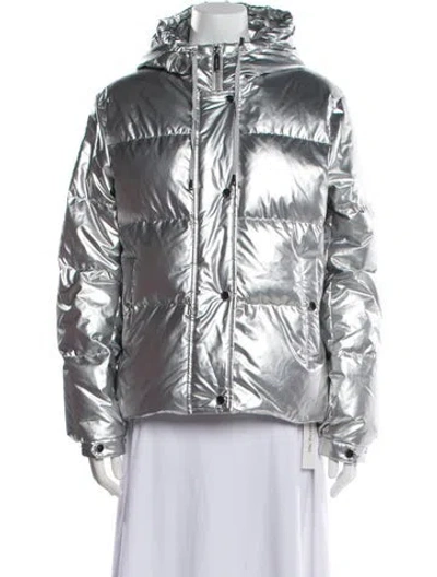 Kate Spade New York Down Coat Silver With Hood Grosgrain Trim & Stand Collar Short Zip Pockets & Zip Closure Fit: Coats by Kate Spade New York typically fit true to size. | Kate Spade New York Down Coat in Silver, Women's L