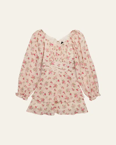 KATIEJ NYC Kids' Girl's Swiss Dot Floral Puff-sleeve Dress In Pink