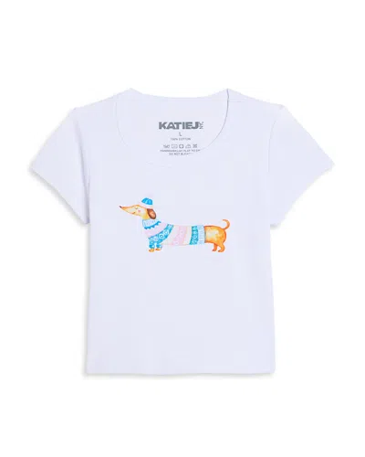 KatieJnyc Girls' Tween Dachshund Tee - Big Kid.Color:White.Size:XL (14-16).Material:100% cotton.Tees.