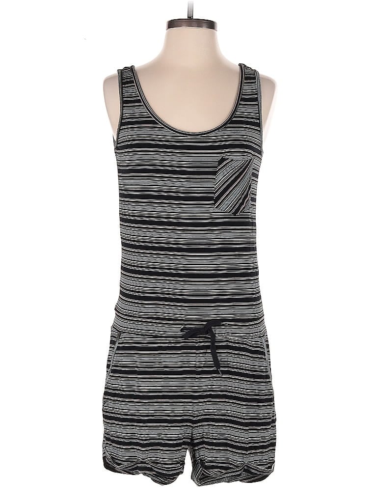 Kavu Romper, Size: X-Small. Item Details: Gray, Stripes Pattern, Scoop Neck, Skinny Leg, Sleeveless, Zippers, Women's Dresses, Rayon/Spandex