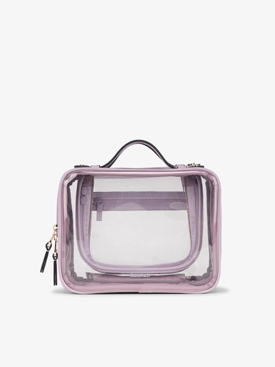 Easy Zip-Around Opening Dual Lay-Flat Handles Ultra-spacious Interior Mesh Zippered Pocket more We gave you the large and mini sized makeup bag, and now we're bringing you the Medium Clear Cosmetic Casebecause you asked for it! This travel makeup bag is small enough to fit in your carry-on, and large enough to store all your beauty essentials. We designed our newest makeup case to be transparent, so you wouldn't leave anything behind.hideDimensions: 9.75 x 5 x 7.5