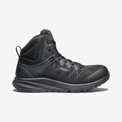 With game-changing cushioning and a breathable upper, this mid-height work sneaker provides additional ankle support for all-day motion.Features100% non-metallic construction for easily passing through metal detectors in highly-secured areasNon-mutilating upper reduces the chance of marking or scratching surfacesKonnectFit heel-capture system for a locked-in feelNylon shank for midfoot supportPFAS-free, durable water repellent repels water just as well as forever chemicals without harming the planetMaterialsKEEN.ReGEN lightweight, compression-resisting midsole providing up to 50% energy return with every stepOil- and slip-resistant non-marking rubber outsoleElectrical hazard (EH) or Electric Shock Resistant (ESR) footwear helps provide a secondary source of protection in case of accidental outsole contact with live electrical circuitsRemovable metatomical insole for comfort and supportSecure fit lace capture systemPlastic HardwareMesh liner provides breathability to help keep feet cool in warm environmentsCareGently brush with a soft, damp sponge to remove loose dirt. Treat stains right away with a gentle cleaner. Air dry away from heat.Safety FeaturesLeft and right asymmetrical, non-metallic carbon toes offer unobtrusive fit and are 15% lighter than steelMeets ASTM F3445-21 and F2413-18 M I/75 C/75 EH standardsMeets ASTM F1677-96 Mark II non-slip testing standardsOutsole and midsole meets ASTM D471-06 903# oil and isooctane chemical resistance standards