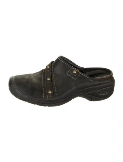 Keen Leather Mules Blue Round-Toes Platform Unfortunately, due to restrictions, this item may not be eligible for shipping in all areas. | Keen Leather Mules in Blue, Women's 6