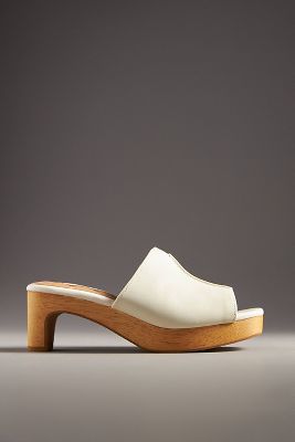 Suede or leather upper Cushioned synthetic insole Wood heel Rubber sole Slip-on styling Imported Ryan Wood-Bottom Platform Heels by Kelsi Dagger Brooklyn in White, Women's, Size: 10, Leather/Rubber/Suede at Anthropologie