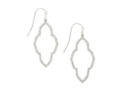 Kendra Scott Abbie Small Open Frame Earrings - Earring : Rhodium Metal : An homage to our iconic medallion, the Kendra Scott Abbie Small Open Frame Earrings feature an elongated silhouette with a sprinkling of sparkle. ; Designed in 14K gold or rhodium plated over brass in a shiny finish. ; Matching drop style earrings with curved earwire back. ; For long-lasting wear, remove jewelry when bathing or washing your hair, swimming, exercising, or styling your hair − as soaps, chlorine, detergents, cleaning agents, and hair products can remove the plating. ; Imported. Measurements: ; Width: 2 3 in ; Height: 2 1 4 in | Kendra Scott Abbie Small Open Frame Women's Earrings Earring Rhodium Metal, Brass