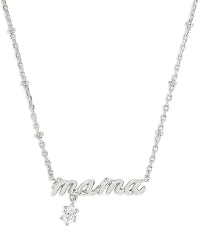 The perfect stand-out necklace that complements even the most basic t-shirt.Introducing the Women's Mama Crystal Short Pendant Necklace by Kendra Scott, an elegant piece finished in rhodium over brass. This necklace features a beautiful script design with dainty Cubic Zirconia sparkle and a silver plating for a fine finish. The 19" chain includes a 0.21"L x 0.86"W pendant and is secured with a lobster clasp and a single adjustable slider bead for personalized comfort. Ideal as a sentimental gift for the mother figures in your life, this necklace embodies love and style.