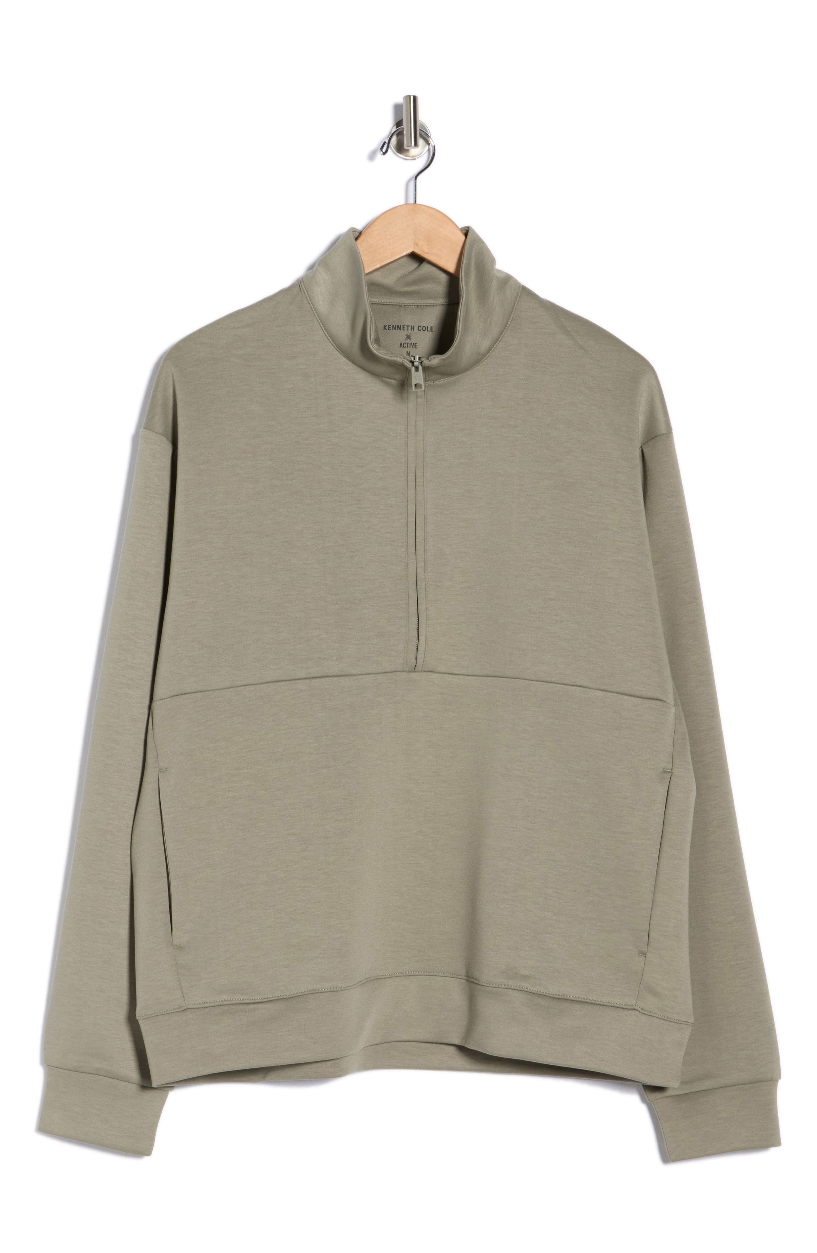 Made from a blend of cozy and performance yarns, this pullover offers sweatshirt-like comfort in a classic half-zip style. Half-zip closure Stand collar Long sleeves Front slant pockets 95% polyester, 5% spandex Machine wash, tumble dry Imported