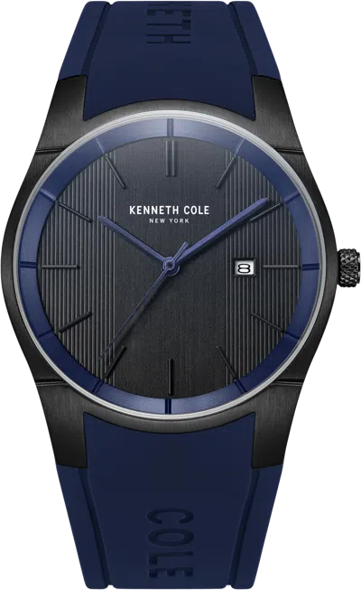 Make a fashion statement with this ultra-modern watch by Kenneth Cole New York. This signature timepiece has three-hand movement with a date window and minimalist hour markers. A smooth silicone strap will comfortably complete your look.