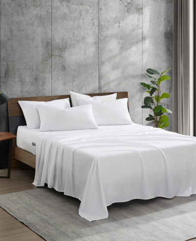 IT'S ALL IN THE . Details: Sheet set 5-Piece sheet set includes one twin flat sheet, one twin fitted sheet, and three pillowcases Fitted sheet features branded all-around elastic and cell phone pockets on each side Super-soft to the touch Features a topical cooling finish for a comfortable night's sleep Wrinkle-resistant Twin flat sheet: 66" W x 96" L, Twin fitted sheet: 39" W x 75" L + 16" deep pocket, standard pillowcase(s); 30" W x 20" L Full flat sheet: 81" W x 96" L, full fitted sheet: 54" W x 75" L + 16" dee pocket, standard pillowcase(s); 30"Wx20"L Queen flat sheet: 94" W x 102" L, queen fitted sheet: 60" W x 80" L + 16" deep pocket, standard pillowcase(s); 30" W x 20" L King flat sheet: 112" W x 102" L, king fitted sheet: 78" W x 80" L + 16" deep pocket, king pillowcase(s); 40" W x 20" L Standard 100 By OEKO-TEX® Certified 100% recycled polyester Machine wash Imported | Kenneth Cole | Solution Solid Sheet Set in White, Size: Full