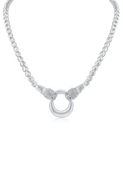 Pavé Cubic Zirconia Panther Head Circle Pendant Necklace