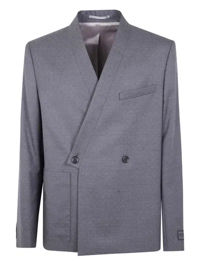 grey virgin wool double-breasted closure asymmetrical hem chest pocket internal pockets