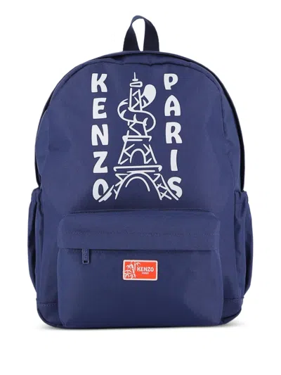 KENZO Kids' Eiffel Tower-print Backpack In Blue