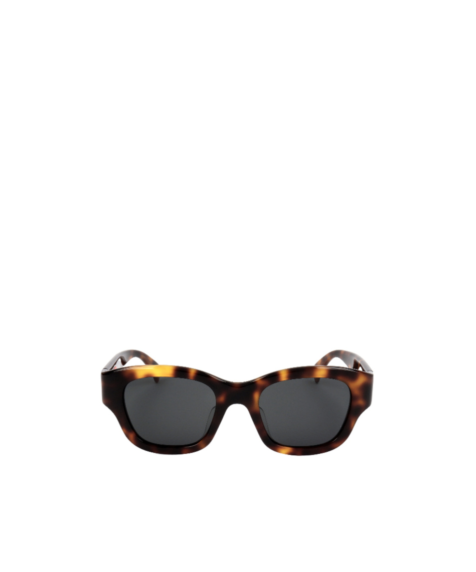 Full-frame design with tinted lenses and monogrammed temples.