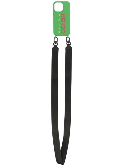 logo-print iPhone 13 pro case from KENZO featuring grass green, yellow, deep pink, logo print to the front, cut-out detailing, detachable shoulder strap and curve-edge body.