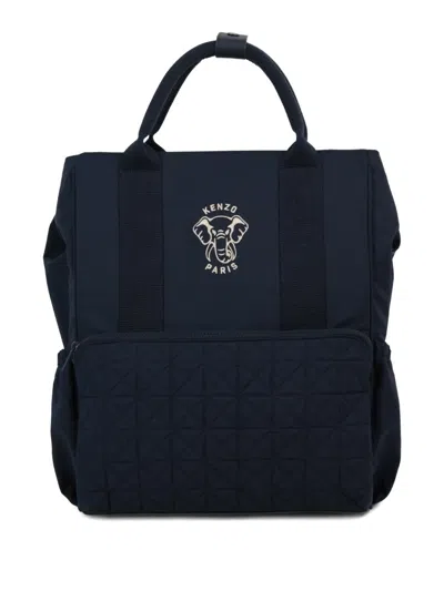 navy blue embroidered logo quilted front panel two top handles detachable changing mat