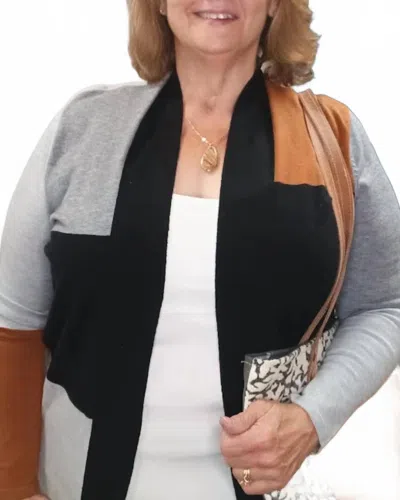 KEREN HART Color Block Cardigan In Multicolor In Gray