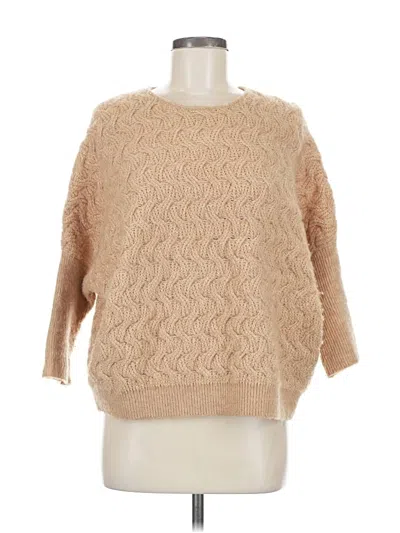 Kerisma Pullover Sweater, Size: Medium. Item Details: Tan, Chevron/Herringbone Pattern, Boatneck, 3/4 Sleeve, Ruched, Women's Tops