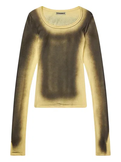 banana yellow faded effect round neck long sleeves straight hem