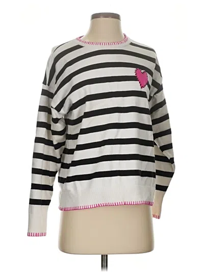 Kerri Rosenthal Pullover Sweater, Size: Small. Item Details: White, Stripes Pattern, Mock Neckline, Long Sleeve, Embroidered, Women's Tops, Rayon/Polyester/Nylon
