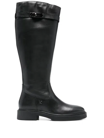 black leather strap detail buckle fastening side zip fastening logo detail block heel