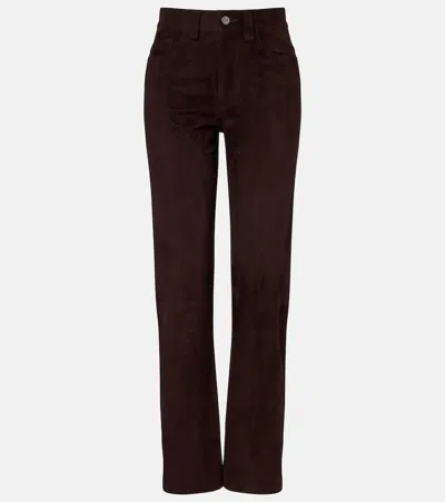 KHAITE Callum High-rise Suede Straight Pants In Black