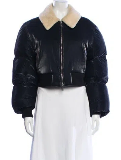 Khaite Down Jacket Blue Faux Fur Trim & Pointed Collar Zip Pockets & Zip Closure Fit: Jackets by Khaite typically fit true to size. | Khaite Down Jacket in Blue, Women's S