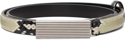 スネーク型押しレザーのベルト。 ・サル革 ・差し込み式のバックルにボーダーの型押し ・シルバートーンのバックル ・幅 2cm サプライヤーカラー:Natural