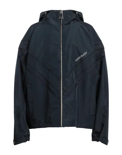 techno fabric, brand logo, two-tone, hooded collar, single-breasted , long sleeves, fully lined, zipper closure, multipockets, pocket with snap fasteners, large sized, windbreaker model , Color: Midnight blue , Size: 00