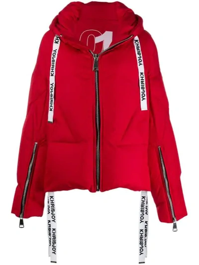 KHRISJOY Logo Drawstring Puffer Jacket In Red