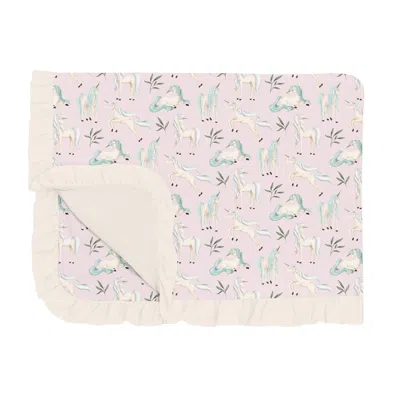 KICKEE Ruffle Toddler Blanket In Shrinking Violet Sleeping Unicorns