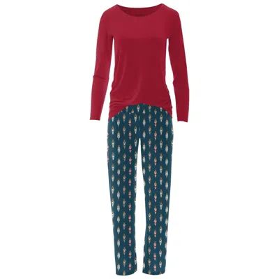 KICKEE Women's Long Sleeve Tee & Pajama Pants Set In Peacock Nutcrackers In Multi