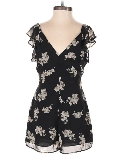 Kimchi Blue Romper, Size: 0. Item Details: Black, Floral Pattern, Ruffles Neckline, Flared Leg, Short Sleeve, Women's Dresses, 100% Polyester