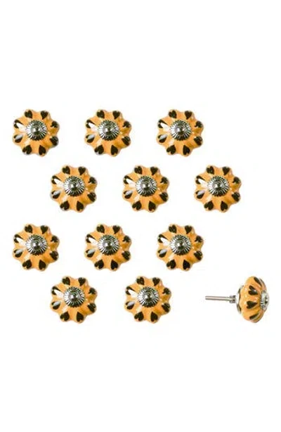 Bohemian-inspired charm meets artisan craftsmanship in these hand-painted knobs for doors, drawers, and more. Pack of twelve knobs Ceramic/metal Imported