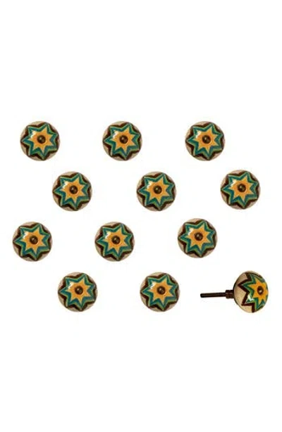 Bohemian-inspired charm meets artisan craftsmanship in these hand-painted knobs for doors, drawers, and more. Pack of twelve knobs Ceramic/metal Imported