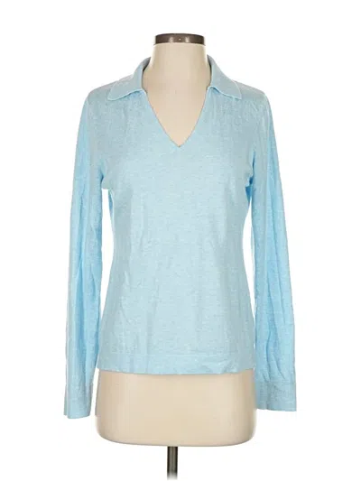 Kinross Pullover Sweater, Size: Small. Item Details: Blue, Collared Neckline, Long Sleeve, Women's Tops, Cotton/Polyamide/Cashmere