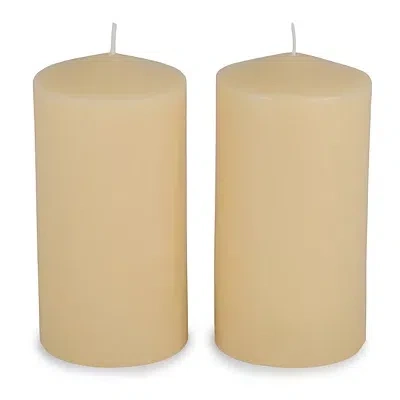 Illuminate your table centerpiece with the set of Ivory Unscented Pillar Candles. These unscented candles flaunt a simple, classic design that subtly elevates your everyday home decor. Set includes two (2) pillar candles Candles measure 6H x 3 in. in diameter each Ivory finish Paraffin wax Unscented Single wick design Care: Trim wick to 1/4 inch prior to lighting. Do not allow wick trimmings to accumulate in wax pool. Place on a temperature safe surface. Burn for 2-3 hours at a time. Never leave burning candles unattended. Burn within sight. Keep away from anything that can catch fire. Keep out of reach of children and pets. Discontinue use when 1/4 inch of wax remains. Contact your local Kirkland's store for availability. Quantities and selection may vary by location. | 3x6 Ivory Unscented Pillar Candles, Set of 2, | Kirkland's Home
