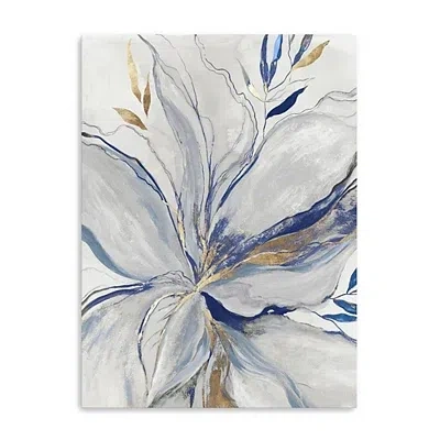 Make any wall in your contemporary home blossom in a glorious way! Featuring gold foil accents, our Gold Charcoal Bloom Canvas Art Print is chic and modern. Art measures 24L x 1.3W x 32H in. Giclee printed on archival-grade, polyester canvas Canvas stretched over solid wood Features a botanical subject Accented with gold foil details Hues of white, gray, blue, and gold Weight: 5.7 lbs. Hangs from back-mounted hardware Care: Dust with a soft, dry cloth. Avoid exposure to heat, direct sunlight, and moisture. This item is available at Kirklands.com only, not available in stores. Please note: this item cannot be shipped to APO/FPO addresses. | Bloom Canvas Art Print, 24x32 in., White/Blue/Gold, Medium | Kirkland's Home