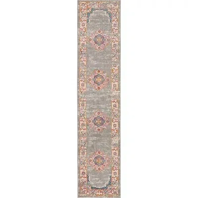 Incorporate vibrant color into your space with this Gray & Pink Central Motif Botanical Runner! Balanced by a distressed finish, it makes an eye-catching statement without overpowering your decor. Rug measures 2 ft. 2 in. in length x 10 ft. in height Crafted of polypropylene and latex Machine-made construction Features central motif with botanical designs Hues of gray pink, orange, blue, purple, and ivory Distressed finish Rug pad not included Care: Vacuum regularly. Blot spills with a mild detergent and clean cloth. Not safe for outdoor use. This item is available at Kirklands.com only, not available in stores. Please note: this item cannot be shipped to APO/FPO addresses. | Central Motif Botanical Runner, Gray/Pink/multicolor, 2x10 , Polypropylene | Kirkland's Home