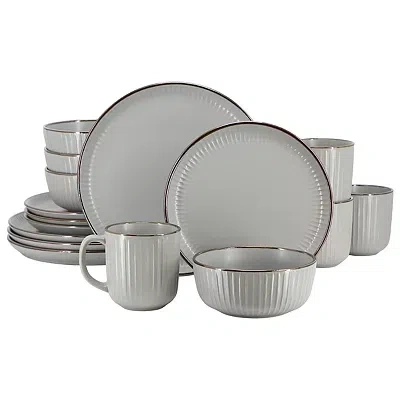 Make your dining experience feel sophisticated with this Light Gray Leo Stoneware 16-pc. Dinnerware Set. Detailed with a sleek finish and subtle texture, this dinnerware boasts a contemporary yet timeless design that is perfect for any occasion. Set includes four (4) dinner plates, four (4) salad plates, four (4) cereal bowls, and four (4) mugs Dinner plates measure 10.5 in. in diameter each Salad plates measure 8.6 in. in diameter each Cereal bowls measure 6 in. in diameter each Mugs measure 3.6 in. in diameter each; holds up to 12 oz. Crafted of stoneware Contrasting trim finish Hues of gray Food and microwave safe Care: Dishwasher safe. This item is available at Kirklands.com only, not available in stores. Please note: this item cannot be shipped to APO/FPO addresses. | Dinnerware Set, 16 Piece, Gray, 12 oz, Stoneware | Kirkland's Home