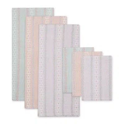 Make your kitchen look and feel a little more charming with this Daisy Dobby 6-pc. Dish Towel and Cloth Set. You'll adore the dainty floral designs and soft pastel tones. Set includes three (3) dish towels and three (3) dish cloths Dish towels measure 18L x 28W in. each Dish cloths measure 13L x 13W in. each Crafted of cotton Features woven daisy designs Hues of gray, pink, purple, blue, and white Care: Machine wash colors separately in cold water on gentle cycle. Tumble dry low. Low iron if needed. This item is available at Kirklands.com only, not available in stores. Please note: this item cannot be shipped to APO/FPO addresses. | Dish Towel and Cloth Set, 6 Piece, Gray/Pink/Purple, 18L x 28W, Cotton | Kirkland's Home