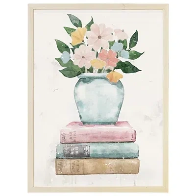 KIRKLAND'S Floral Vase On Books Framed Art Print In Multi