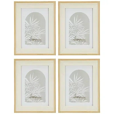 Show off cherished memories with these Cream Geometric Picture Frames. Place them together for a cohesive display or scatter them throughout your home for a personal touch in every corner! Set includes four (4) frames Each frame measures 7L x 0.75W x 9H in. Crafted of wood and glass Natural and cream finish Feautes a textured, geometric design Set holds four (4) 5x7 photos Easel back for tabletop display Weight: 2.15 lbs. Can hang from backmounted hardware Care: Dust with a soft, dry cloth. This item is available at Kirklands.com only, not available in stores. Please note: this item cannot be shipped to APO/FPO addresses. | Geometric Picture Frames, Set of 4, Ivory/Brown, 5x7 , Wood | Kirkland's Home
