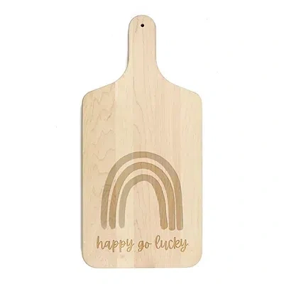 Serve up your favorite seasonal treats with this Light Brown Happy Go Lucky Cutting Board. Its perfect for making a magical St. Patrick's Day charcuterie board! Board measures 8L x 0.75W x 17H in. Crafted of wood Paddle shape Engraved with the phrase "Happy go lucky" and a rainbow Light brown finish Food safe Designed and engraved in the USA Care: Clean with sponge and hot, soapy water. Dry thoroughly. Condition board with food-safe mineral oil monthly to prevent wood from drying out. This item is available at Kirklands.com only, not available in stores. Please note: this item cannot be shipped to APO/FPO addresses. | Light Brown Happy Go Lucky Cutting Board, Brown, 8L x 0.75W 17H , Wood | Kirkland's Home