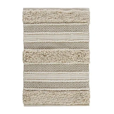 Neutral Tufted Stripes Woven Bath Mat In Brown