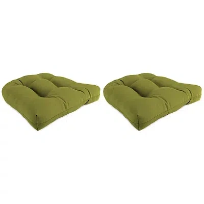 Create a comfortable patio nook with this Green French Edge 2-pc. Outdoor Wicker Cushion Set. Made with durable, weather-resistant fabric, these cushions are perfect for outdoor lounging! Set includes two (2) seat cushions Each seat cushion measures 18L x 18W x 4H in. Crafted with polyester fiber fill Green finish Fabric is resistant to mildew, water, and stains Up to 500 hours of UV protection Finished with French edges Tufted design Rounded back corners Safe for outdoor use Care: Spot clean with warm water and mild soap. This item is available at Kirklands.com only, not available in stores. Please note: this item cannot be shipped to APO/FPO addresses. WARNING: Cancer and Reproductive Harm - For more information go to www.P65Warnings.ca.gov . Due to state-specific restrictions, this product is not eligible for shipment to addresses in California or Minnesota. | Outdoor Wicker Cushion Set, 2 Piece, Green, 18L x 18W 4H , Polyester | Kirkland's Home
