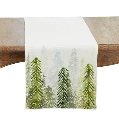 Create a stunning, nature-inspired tablescape with this Printed and Beaded Trees Table Runner. The outdoor scene is perfect for winter but also versatile enough for all year round. Runner measures 72L x 16W in. Crafted of cotton Features printed and beaded tree designs Hues of green and white Non-reversible design; unlined The final size of the product may differ by a few inches as a result of the finishing process. Color of product may exhibit slight variations due to the nature of the dyeing process, difference in lighting conditions, and individual monitor settings. Care: Spot clean. This item is available at Kirklands.com only, not available in stores. Please note: this item cannot be shipped to APO/FPO addresses. | Printed and Beaded Trees Table Runner, White/Green, 72L x 16W , Cotton | Kirkland's Home