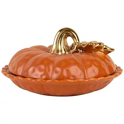 KIRKLAND'S Pumpkin Pie Plate With Lid In Orange