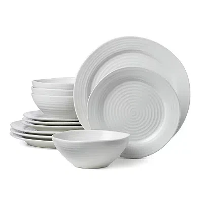 Keep it classic in the kitchen with this White Ridge 12-pc. Stoneware Dinnerware Set! This white stoneware set features an imperfect ridged design, inspired by handcrafted pottery details. You'll love the clean look in any setting, from farmhouse to contemporary! Set includes four (4) salad plates, four (4) bowls, and four (4) dinner plates Each salad plate measures 8 in. in diameter Each bowl measures 8 in. in diameter Each dinner plate measures 10.5 in. in diameter Crafted of stoneware Ridged design White finish Safe for microwave use Care: Dishwasher safe. This item is available at Kirklands.com only, not available in stores. Please note: this item cannot be shipped to APO/FPO addresses. | Stoneware Dinnerware Set, 12 Piece, White, 8 | Kirkland's Home